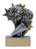 The 4 3/4" Star Blast resin series features an antique pewter finish and metallic gold accents. This Cheer Star Blast Resin depicts two pom-poms and a megaphone.