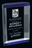 This extra thick freestanding award features a clear acrylic midsection with vibrant blue trimmings to make the personalized message proudly stand out.