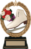 The laurel wreath of this resin trophy surrounds the figure skate and colourful roses, highlighted by negative space.