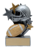 The 4 3/4" Star Blast resin series features an antique pewter finish and metallic gold accents. This Football Star Blast Resin depicts a football and helmet.