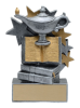 The 4 3/4" Star Blast resin series features an antique pewter finish and metallic gold accents. This Knowledge Star Blast Resin depicts a lamp of knowledge and three open or closed books.