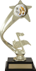 A gold star holds a 2" insert above a gold music note, or figure of your choice, on a black base. Example in catalogue shows as shooting star football or 2" holder. Trophy is 10" in height. View available inserts here and available figures here. Please specify insert and figure choices in the comments section. Price includes a figure up to 6" tall.