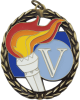 The colourful Negative Space Victory medal depicts a blazing torch beside a "V" for victory, surrounded by a wreath.