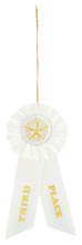 These classic placing rosette ribbons are 3 1/2" x 8 1/2" and are perfect for any awards ceremony. Available in 1st place (red), 2nd place (blue), and 3rd place (white). Has space on the back to write a congratulatory message. Custom rosettes also available - contact us for more information!