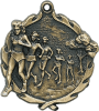 1 3/4" 3D Sculptured Female Cross Country medal depicting a group of women running past trees.