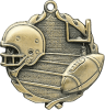 1 3/4" 3D Sculptured Football medal depicts a helmet and football over the field.