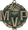 1 3/4" 3D Sculptured MVP medal depicts a victory torch above the MVP.