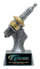 Calling all racing enthusiastists! This silver with gold accents spark plug resin trophy is great for car or motorcycle shows and races. 6" height