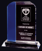 Clear optic crystal is enhanced by a bold strip of blue crystal. Leave the blue blank, or use this space to highlight your logo vertically. Award comes in a satin lined presentation box.