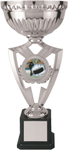 An open design and symbols of victory adorn the 2" insert holder, which holds aloft the victor's cup. View available insert options here. Please specify insert choice in the comment section below.
