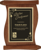 This walnut finish plaque has a three-dimensional scroll at the top and bottom, and curved sides, which complement your message.